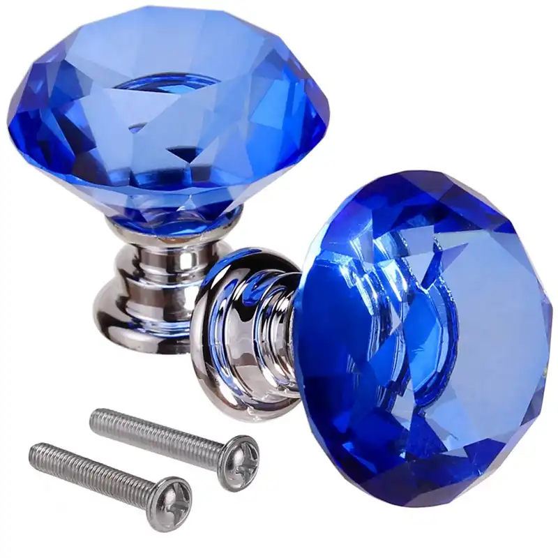 عروض Souvnear وضمان أزرق المقابض من الزجاج Pulls 2 قطع زجاجية أزرق المقابض مقبض كابينة مجموعة من 2 مقابض لباب خزانة الملابس مقبض سحب الخزانة المطبخ الدرج أدوات ملحقة زينة منزلية Amazon Ae