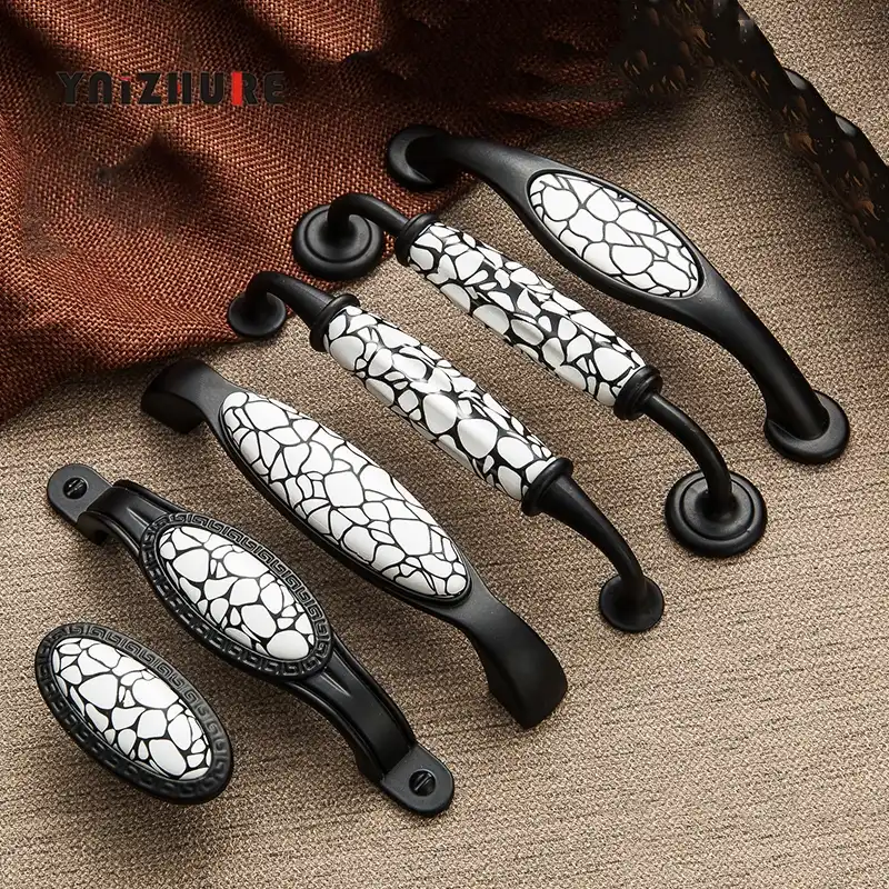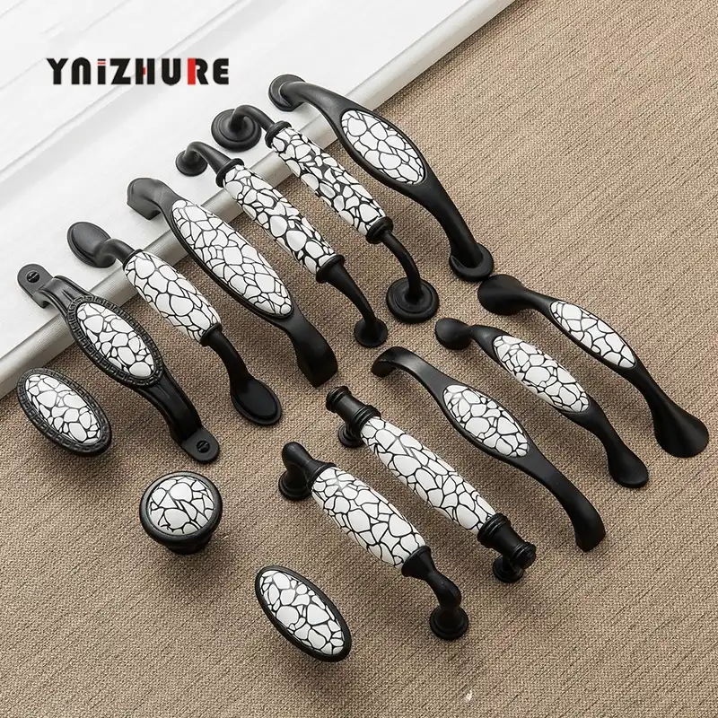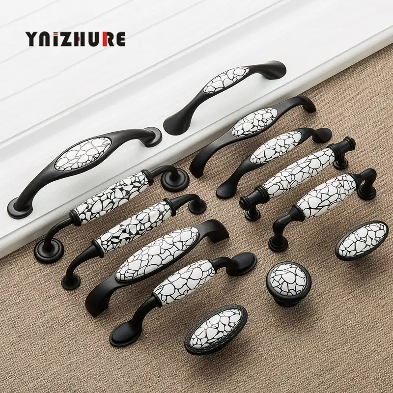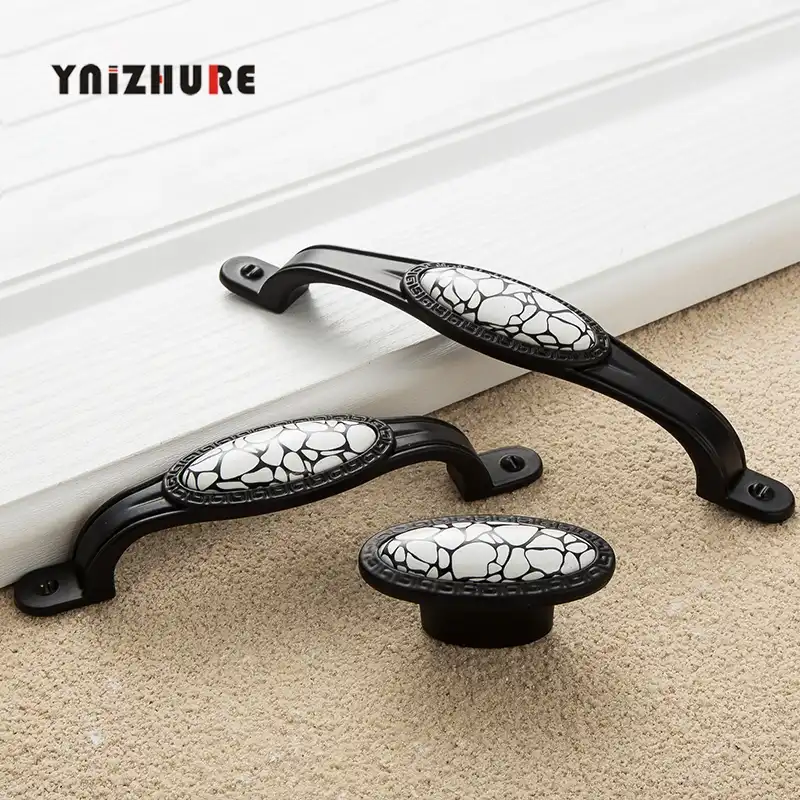 مقابض باب خزانة من Ynizhureblack مزخرفة بالرخام والسيراميك مقابض للدرج مقابض أثاث على الطراز الأمريكي Aliexpress