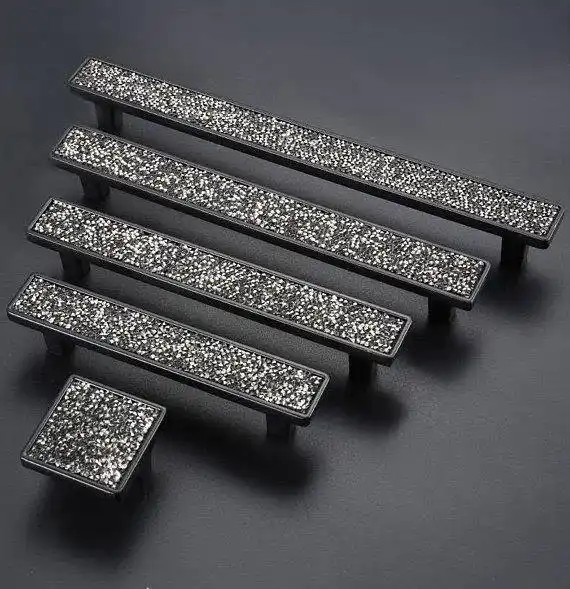 3 75 5 6 3 الكريستال الأسود درج مقبض سحب مقبض المطبخ خزانة مقابض باب المقابض الزجاج حجر الراين مضمد تسحب ديكور مقابض للخزانات Gooum