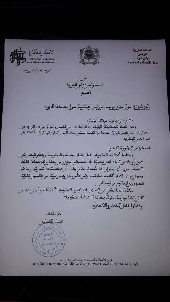 بالوثيقة برلماني يفجرها في وجه الحكومة ويوجه سؤالا للعثماني حول تقاعد الوزراء المغادرين