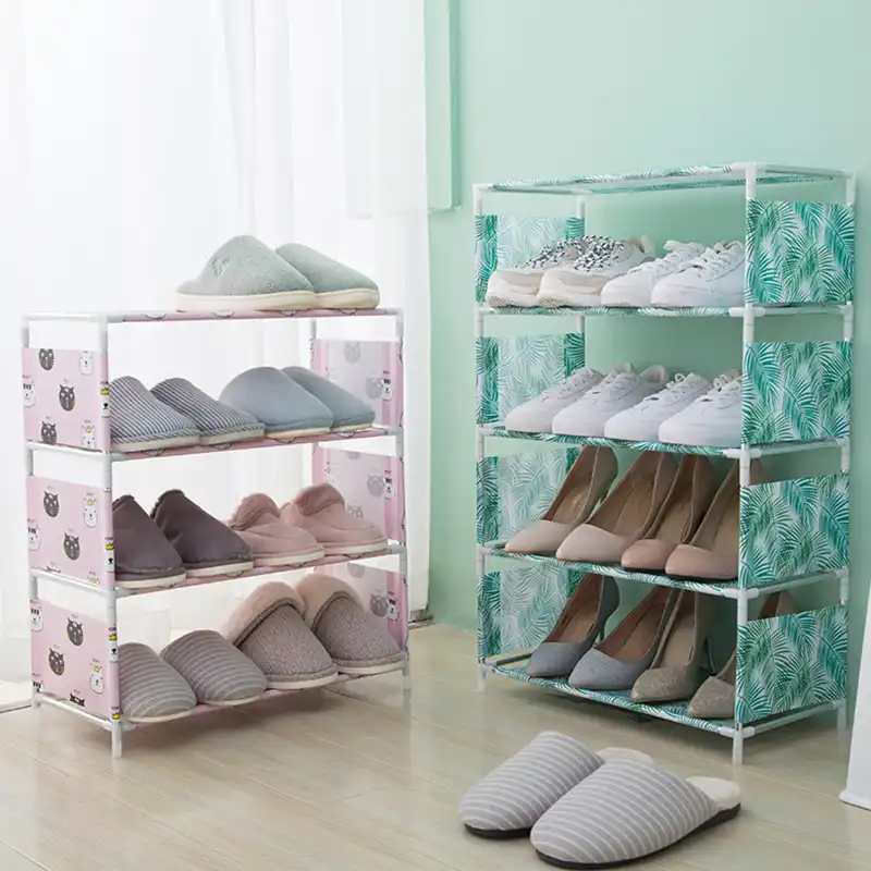 3 4 طبقات غير المنسوجة حذاء رف غرفة المعيشة النسيج الغبار مجلس الوزراء حامل م نظ م Diy طوي حامل التخزين رف الحذاء منظمات ورفوف الأحذية Aliexpress