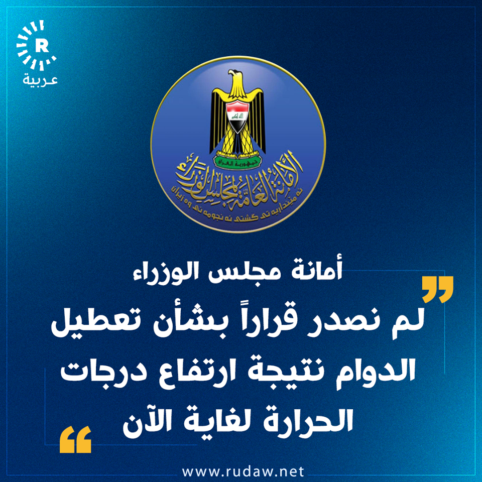 موقع رووداو أمانة مجلس الوزراء لم نصدر قرارا بشأن تعطيل الدوام نتيجة ارتفاع درجات الحرارة لغاية الآن