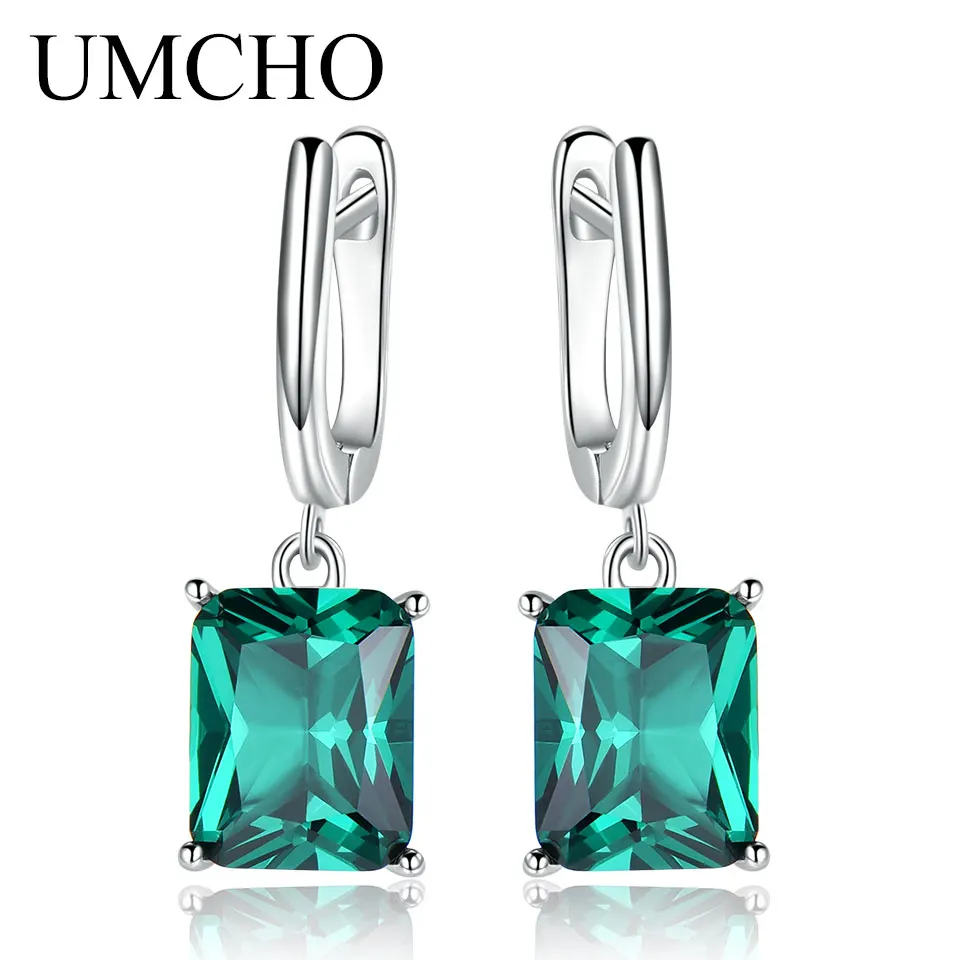Umcho الصلبة 925 فضة الزمرد الاشتباك الزفاف أقراط للنساء الأحجار الكريمة خمر بيان مجوهرات الزفاف هدية ل في الأقراط من الإكسسوارات والجواهر على Unohama Club Store