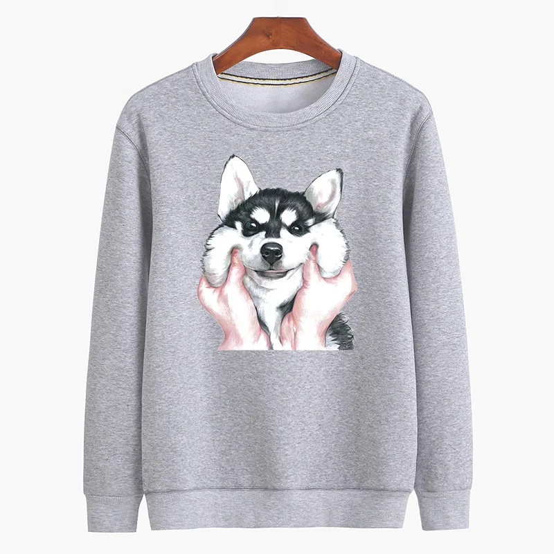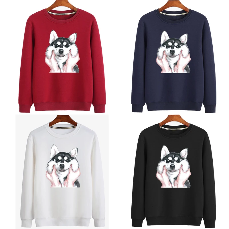 بلوفرات مضحكة مطبوعة للرجال من القطن سترة بقلنسوة على شكل كلب هاسكي الحيوان قمصان كرتونية بدون غطاء للرأس ملابس رجالية للخريف والشتاء باللون الأسود في قمصان وسترات بقلنسوة من ملابس الرجال على
