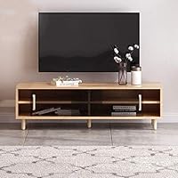 حامل خزنة لوحدة تحكم مركزية للتلفزيون ومنصة تخزين عصرية متعددة الأغراض ومنظم وسائط متعدد الأغراض وحامل تلفزيون في الوسط مع أبواب الخزانة ورف تخزين مفتوح Amazon Ae