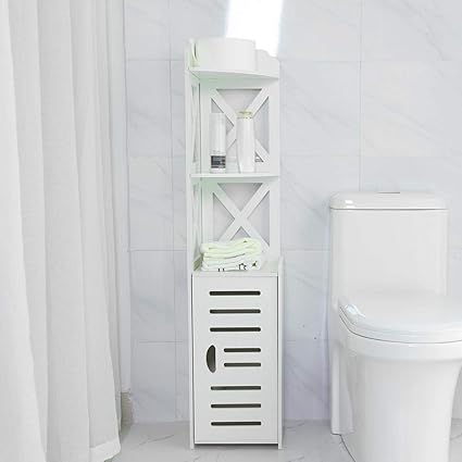 أبيض نصف ركن الخشب الحمام خزانة رف خزانة خزانة تخزين المرحاض وحدة تخزين الحمام قائمة حر رف تخزين الحمام مع أرفف باب واحد 120 27 27 سم Nyfcc Amazon Ae