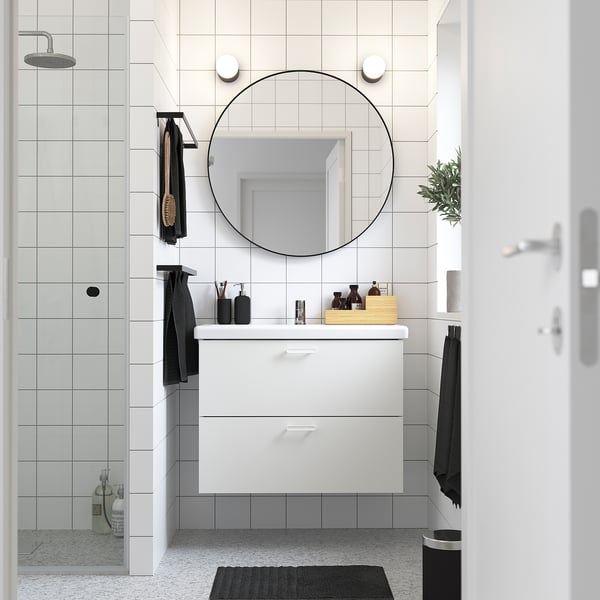 Enhet Tvallen وحدة تخزين حمام 2 درج شكل السنديان أبيض حنفية Pilkan Ikea